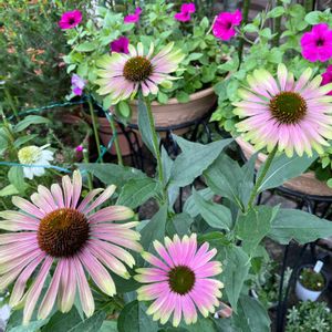こんばんは🌟 我が家のファーストエキナセアの グリーンツイスターが少しずつ 咲いてきました💚💗 半日蔭の庭ですが、4年目も咲いて くれて感謝です(*˙˘˙*)ஐ