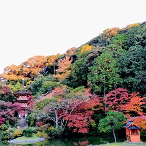 旧友と奈良旅行に行ってきました。 紅葉🍁が綺麗。特別拝観開催中の秘仏にも会え、とても楽しい3日間でした☺️ 画像は奈良をちょっと越えた京都府木津川市の浄瑠璃寺。小さくて見えづらいのですが、池の向こうには三重の塔が建っています。 三重の塔の池を挟んだ向かい側に建つ阿弥陀堂で九体阿弥陀如来を拝んできました✨あと吉祥天女像も💖なんたる幸運。ずいぶん前から、見たかったので、念願叶いかなり嬉しかったです。🥳 何枚か奈良の画像投稿します📸