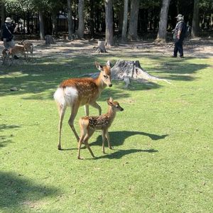 萬葉植物園から ヤマゴボウ、、、ヨウシュヤマゴボウでなく、ヤマゴボウ 花が真っ直ぐに咲くので見分けられる フユアオイ、、、食用にするために古くにほんで栽培されていたそう 可愛い花が咲いていました 奈良に行ったのはニュースで子鹿が生まれていると聞いたから「そうだ、奈良に鹿を見に行こう」でした〜 子鹿、小さくて可愛い💕 母鹿は子供がいるときは凶暴になると言ってましたが全然緊張感なかったです