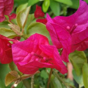 今日のお花、ブーゲンビリア 毎年花数が少くて残念ですが、この濃いピンク色が、目立ってお庭を華やかにしてくれてます 北海道は外での冬越しが出来ないので、大株にしたいけど出来ない❗️南国のブーゲンビリア〰️⁉️見ると素敵だな〰️(*^^*)って思ってしまいます。こちらも