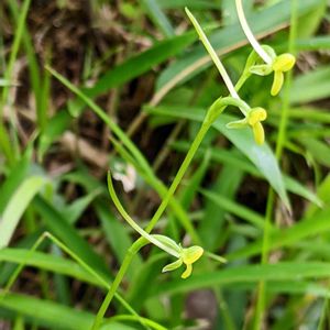 草に紛れてたくさん咲いていました♪ コバノトンボソウ(小葉の蜻蛉草) ラン科 ツレサギソウ属 多年草 北海道、本州、四国、九州に分布。 陽当たりのよい湿地に生育。 高さ20〜40cm。 茎は単一、直立し、細く繊細。 葉は1個(写真撮れませんでした)、広線形、基部は茎を抱く。 花はやや偏側的にまばらに、5個〜10個ほどつき、淡黄緑色。苞は披針形、背萼片は卵形、側萼片は長楕円形。 側花弁は斜長楕円形で背萼片よりやや長い。 唇弁は舌状、やや肉質。 距は細長く、12〜18㎜、後ろへ跳ね上がってつく。ずい柱は短い。 花期6〜8月 7月20日撮影 駒止湿原