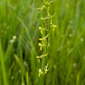 コバノトンボソウ (小葉の蜻蛉草) ラン科.ツレサギソウ属 花期…6-8月 茎の高さ…20~40㌢ 全国に分布 淡黄緑色の花は茎によって 数個まばらについています。 距の長さ…18㍉程 距が後ろへはねあがっています。 茎が細いので 他の草と同化して 淡黄緑色のお花が 引き立って見えます☘️ 6月22日.湿原で🤳