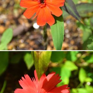 真っ赤な鮮やか花二輪♥️😍❤️ ともに茶花にも使われる、ナデシコ科マンテマ属の… ⬆️マツモトセンノウ ⬇️ガンピセンノウ
