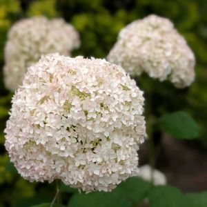 3年目のアナベル🤍🩷 ル マニフィーク 植え場所が良くなかったのか元気がなく、昨秋に移植しました。 今年は大きな可愛いお花咲きましたよ💕 結構茎がしっかりしてて、昨日一昨年の雨では倒れずに頑張れてます🍀🍀
