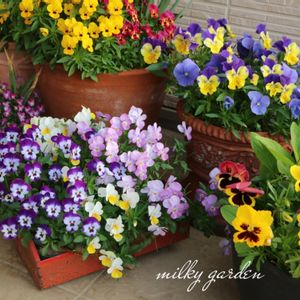 おはようございます☁️ 毎日、パンジー、ビオラの花がらつみ、ご苦労様です🎐 さて、いったい一つのビオラは何日咲くのだろう?と調べてみました! なんと予測をはるかにこえて、約二週間!パンジーは若干短いです🌼 詳しくはみどりのまとめにしてみました💦良かったらご覧くださいませ💞 GS の皆様に刺激されて、、今年ほど頑張ったことはない!くらいビオラたちのお世話しております。しかし来年はもう少し色合いを考えよう、、と、このガチャガチャのパレット🎨のような写真を見て反省~(^_^;)