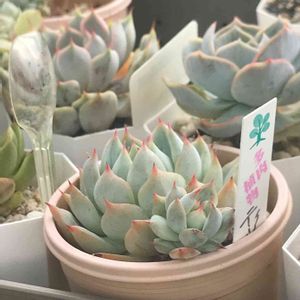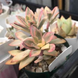 ★メキシカンサンセット どうも♪ 本日はメキシカンサンセット✨ エケベリア交配種です。 メキシカンサンセットは ♀ラウリンゼ(ラウリンドサヤナ) ♂アガヴォイデス(相生傘) の交配種と言われています。 ラウリンゼではなく、 コロラータという説もあるらしいです。 ラウリンゼは、 よく「laurinze」と書かれますが、 こちらも交配種なので 正しくは「lau-lindsayana」です。 相生傘は、 アガヴォイデス(東雲)の変種とされています。 この交配式では、 表現が二分されるようで、 紅葉するタイプをメキシカンサンセット あまり紅葉しない青葉タイプをブルーシャトウ と品種が区別されているようです🤔 ちなみに、 名前にあるメキシコはほぼ無関係で… 残念ながら、国際的に認められた、 有効品種ではないようです💦 -∴-∵-∴-∵-∴-∵-∴-∵-∴-∵-∴- Echeveria 'Mexican Sunset' エケベリア 'メキシカンサンセット' 和名 不明(情報募集中) 別名 ブルーシャトウ(ー) ※シスター