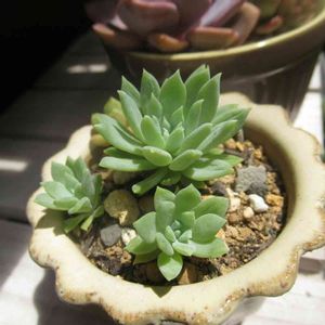 早朝のベランダで、ひときわ美しいブルーバード 白い葉もいろいろありますが、 この子の葉はなんというか、 ヒラメの刺身のようなかんじ〜٩(๑❛ᴗ❛๑)۶ この子も以外なことに イマイチ出自が不明?らしい。 今朝、I.C.Nのサイトで調べてみましたが、 カンテは交配には全く関係なく、 多分、この子の親は E.colorata and E.desmetiana であるとなってました。 私のバイブル本にも、↑これが有望のようと記載されていたから多分そうなのでしょう。 多肉🔰の私の素朴な疑問ですが、 なんで作出者の名前が記載されているのに、 交配式がイマイチ不明なのかな〜❓ オバさんには、よくわかりませんが、 やはり自然を解明するのは、 難しいってことなのかな(о´∀`о)