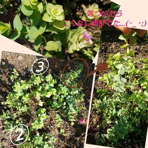 地植えのオレガノさん達ですが、③だけが❪オレガノ ケントビューティー❫✨ ①②は札なし…😅北海道栗山産ただのオレガノ…北海道でも地植えで越冬するよ👍️と、お花屋さんのお墨付き😊 ケントビューティーさんは、しばらくは鉢植えで家の中で過保護にしていたけど、なんだか元気がなくなって来たのを期に、北海道のフォロワーさんが、ケントビューティーさんを地植えできれいに育てていたので、思いきって野生オレガノさんと同居させてみたら、まあ逞しくなってしまって😅 ついこの間まで、ブラックベリー畑でスズメバチ騒動があったりで、しばらく気にかけていなかったら、伸び放題になっていた😅