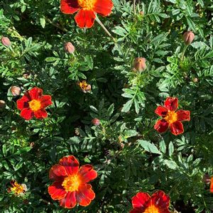 マリーゴールド ディスコレッド🌱 台風の強い雨風に打たれたので 花の香りが漂っています 花も葉っぱも、 春より深みを増したようデス