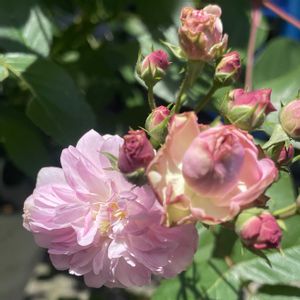 今シーズン新苗でお迎えのお花を2つ🌹 ①② こんぺいとう 夏顔のこんぺいとう たくさん咲いて可愛い♡ この季節はグリーンがかったお花💚 8/27投稿からの咲き進んだ姿 雨が降る前の様子です ③ ポルトブルーからのシュート 今シーズンお迎えの新苗の中でも ポルトブルーは1番枝が細くて シュートが出なかった… そんなポルトブルーから シュート出てきたの!!! 全く気づいてなくて みつけた瞬間嬉しすぎた💓 台風の影響で久々に雨が降りました このタイミングでバラの消毒 今朝はその為に早起きしました 朝は少し涼しくて 太陽が昇ってくる前に終了❣️ この週末で肥料をあげたり 秋バラに向けて始動予定です☺️