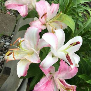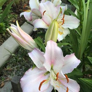 今年咲いた百合です。まだ咲いていないものは咲いたらUPしますね(*^^*)イージーダンスは3回目(4年目)の開花で、ピンクフレーバーは前出のレッドライフと一緒に買ったものでちょっと弱り気味なので来年はどうなるかはわかりません💦パーティーダイアモンドは、スカシユリ系(AH)と、鉄砲百合系(L)の交配で出来た品種(LA)で、やや大柄でがっちりした印象です。鉄砲百合の血を引いて、かすかに香りもあります😊