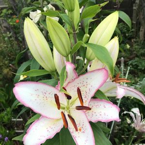 百合 カメレオン 咲き始めは殆ど真っ白な花でしたが、ピンク色になって来ています。