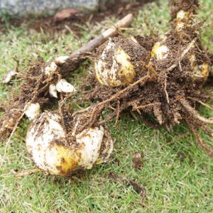 シャンデリアリリー スイートサレンダー球根。10月27日撮影。茎がほとんど枯れてきたので球根を掘り起こして植え替えてみました。来年も沢山咲いてくれると良いな~(^o^)。