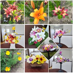 こんにちは😊 またまた連投失礼します🙇💦 夏の花、ダリアの前に、ユリも次々と いろんな色が出現しています😂 お徳用スカシユリ球根トロピカルセットに心惹かれ、今年はじめて植えてみたところ… 最初はピンク、そして白、続いて赤と咲いて、今度はオレンジ…そして、オレンジと赤を混ぜたような…まさにトロピカル色が出現しました😂 好きか嫌いかと聞かれれば、得意な色じゃないけど、せっかく咲いてくれたので、夏色の花ばかりを集めて、フラワーアレンジしました🤭💦 以前のフラワーアレンジも一緒に…💓 タネまきしたカルフォルニアポピー(花菱草)もようやく咲いてきました🎶 いよいよ本格的な夏の到来ですね🥵