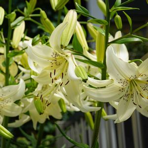 シャンデリアリリー コサージュ。6月6日撮影📸。 昨年ら仲間入りしたコサージュさん🌸。花も小ぶりで沢山咲いて(;´∀`)おまけに球根も良く増える(;^ω^)❕。bupure的にとっても優秀なユリなんです。 切り花にしても花粉も出ないので服が汚れる心配が無いのも嬉しいですよね😊。