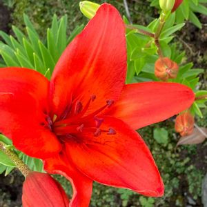 この真っ赤なユリ家に咲いているのですが、品種がわかりません。 情熱を感受させるような赤色で好きなのですが、植えたはずの祖父母も名前は忘れてしまったとのこと💦 知ってる方おられましたら是非教えてください🙇♀️