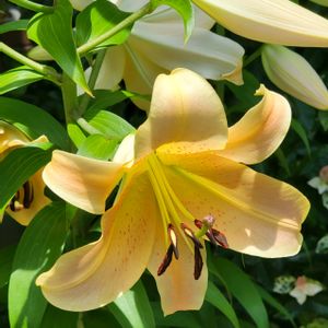 オリエンタルリリーが香っています😍先々週、可睡ゆりの園に行き、感動の記念に買ってきた苗が開花しました。 2枚目以降は、可睡ゆりの園です。映画「あの花が咲く丘で、また君と出会えたら」のロケ地でした。 丘一面に咲く百合を初めて見て、とても感動しました✨