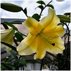 スーパーで衝動買いしたイエローカサブランカの球根 一輪だけ咲いてくれました🙂