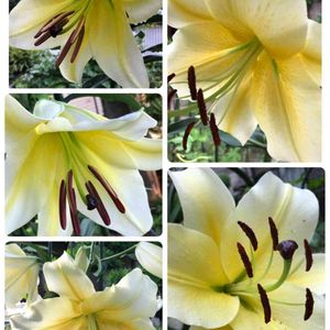 カサブランカ=白 黄色もあります💛 色付きカサブランカ黄色です🎵 6月24日から8個の蕾が次々と右下の子が最後になりました。 毎日強風で香りは飛ばされ、鼻を近づけ あぁーいい香り💛