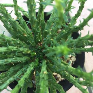 おはようございます😃 暑い🥵眠い💤😵 ユーフォルビア属 ⭐️孔雀丸(くじゃくまる)(9) Euphorbia flanaganii❗️ 6月に開花 いったん花が枯れ また来年と思っていたら、又咲き始めました❗️🥰 ⭐️さくらこ(271) Euphorbia sp❗️ 葉の数が増えて来ました❗️🤗 花は秋に咲くのかなぁ〜❗️🥰 ピロソケレウス属 ⭐️アズレウス柱(124) Pilosocereus pachycladus=(Pilosocereus azureus)❗️ "金青閣" "恐竜閣" "空色柱"とも。 お気に入りの青いサボちゃん、もっと蒼くな〜れ❗️🤗