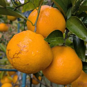 おはようございます☺️ 今朝の温度計は2.5℃ 寒くなって来ましたね🥶 1⃣我が家の三ケ日みかん ……今年は4個だけなって1個落果して昨日孫と1個食べて、酸っぱく無くて美味しかったです😋 でも、三ケ日で採れたのが三ケ日みかんじゃないの❓ 11年前に苗を買った時に、タグが付いていたけれど、静岡の三ケ日みかん由来の苗ってこと❓ 良く分からないけれど、正式に名乗れないみかんです🍊 2️⃣レモン 黄色くなったらジャムを作ります🍋 3️⃣温州みかん