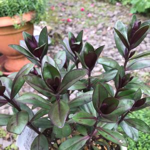 常緑低木で、葉は艶やかです💚 玄関先(軒下)では越冬します。 名前を教えていただけたら嬉しいです。 よろしくお願いしますʅ(◞‿◟)ʃ