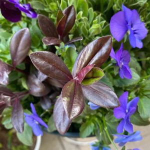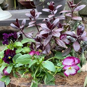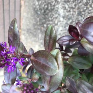 ☘️ベロニカグレース☘️.....冬の寒さではチョコレート色だった葉色が、春になり緑色に変わってきて、ほらもうまた紫の小花をぽちょぽちょと咲かせ始めました💜✨✨