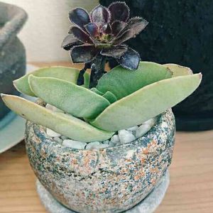 こんな日にはパステルカラーで 何年間も小さな鉢で変化もなく静かに暮らしていた神刃さん 特に植え替えもせずに2月に花芽?蕾を初めてつけてくれたウチの神刃さん 何を血迷ってこんなかわいい急須にinされたのか🤣 神刃…和なイメージからかけ離れる🤣 花芽見つけた頃、蕾がピンクで、その頃にこのピンクの急須拾ったので…これも縁じゃろて… 単純明快な動機… 「today's mar」 未だ開花に至らない神刃さんより ①〜③pic 昨日4月20日の神刃さん ④〜⑤pic 2月23日の神刃さん 実は拾って来てから、自分がピンク苦手と思い出し、寄せ植え全く思いつかず…何かパステルっぽい同士だし…ま…いっか…な感じで… 花…ピンクかな?白かな?意表をついて黄色かな?? ワクワク( ^ω^ )