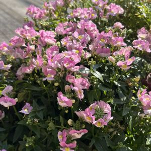 風がビュービューです🍃 今日は香りのネメシア2種 ・ゲブラさんのネメシアメーテル グッピー 2度目の満開です 玄関出したり入れたり 過去picは11/21 1度目の満開と切り戻し後 ・ピンクレモネードはタキイ🏷 満開過ぎてしまいましたが切り戻し✂️
