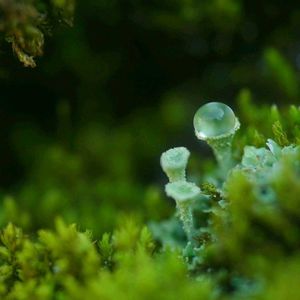 雨上がり 🌧*̣̩⋆̩°。⋆ 岩肌に生育してる苔達は 水分もらって生き生き🌱⋆。 面白い苔? カップみたいな窪みに 水滴が ちょこん( _* ˊᵕˋ )_