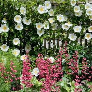 先程の投稿…うっかり削除😅ごめんなさい。ふふの庭🤭 ナニワイバラとヒューケラ♡🩷