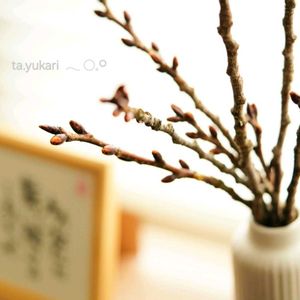 こちらも 雪の重さで折れて ぶら下がってた庭の桜🌸 折れても ちゃんと蕾をつけてくれるんですね〜♥ ほんと愛おしいです 暖かいお部屋で のんびりでいいから咲いてね🌸