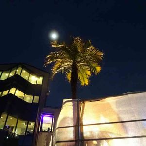 GW中✨ 陽も落ちても 熱気が漂う お台場 海浜公園🌊 見上げれば 南洋の木と 球ボケ気味の お月様とのコラボ✨ 何とも幻想的な🌃