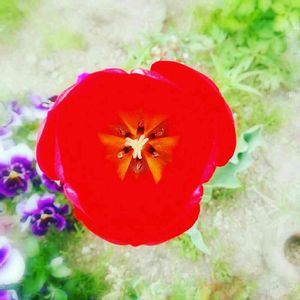 チューリップ🌷 真上から撮ると。 また違った顔になる。
