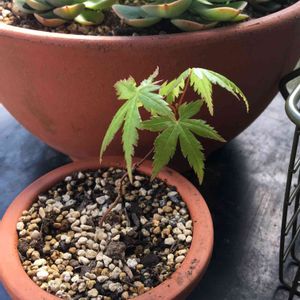 うちの駐車場でひっそり大きくなっていた紅葉 お隣さんの種が飛んできたようです ここまでよく踏まれずに育ったね 盆栽の心得はないけれど鉢上げしてみました
