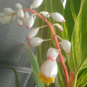 💠ゲットウ(月桃) ショウガ科 ハナミョウガ属 地下茎は横に這いあちこちから地上に偽茎を立てる。偽茎は高さ2mほどになり、先端の方に互生するような大きな葉をつける 5~6月に偽茎の先端から穂状花序を出す。花序はやや垂れ下がり赤い縁どりの入った白い花を咲かせるそうです 来年は見てみたいです❗️