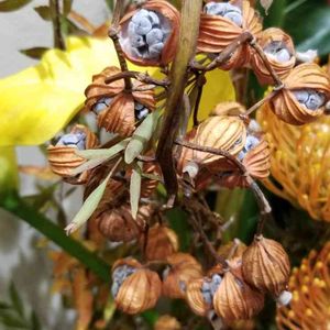 絵画展のギャラリーに贈られた お祝いのお花の中の一つです。 大好きなピンクッションより こちらに興味津々… ちーさんに月桃の実と教えて 頂きました。