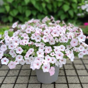 PWスーパーチュニアビスタ シルバーベリー 切り戻し後満開になりました🌸 先日投稿したラブリーアイと良く似てますね🤭