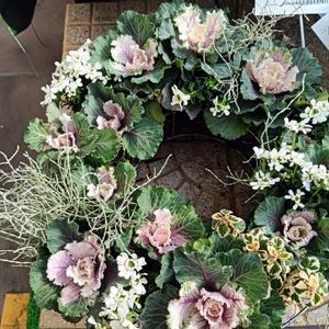 リースと レディ✿*:・゚ 12月、何かと気ぜわしくなりましたね。 行きつけの園芸店で リース教室をやっていたので… ビオラの花色は選べ、葉牡丹と可愛く仕上がりました๓´˘`๓)🩷 今年も大好きな レディにも遭遇! もちろんお持ち帰りしてきました🤭 🌱 今日も良い 1日となりますように🍀✨