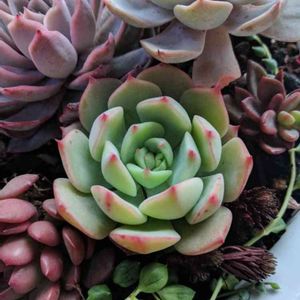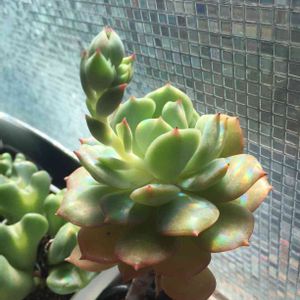 多頭だったピンクルルビー、 離して数ヶ月経つのに形が全然直らない。早くまぁるくなって欲しいな😋 右に写ってるのはサブセシリス、、、 葉焼けしちゃったーー何年も同じ場所にいたのに何で今年は焼けちゃったんやろ😥寄せ植えにいれたからかな? 残念😭