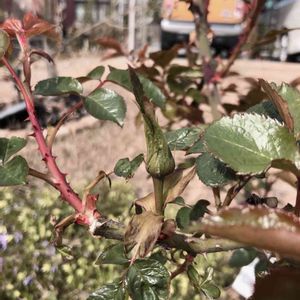 ビブラマリエ!さん 木立の薔薇第1号になるか?? ヤマモトXの肥料の効果か 葉っぱの緑色が濃くて 厚あつしてるわ\\(◡̈)/♥︎