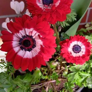 今日はとても暖かいです☀️ 1️⃣黒っぽい赤のダブルが 咲きました🤗 2️⃣白でもない黄色でもない ダブルの子 3️⃣アネモネ 凛々花が咲きましたが 花びら少ない😥 これ本当に凛々花かしら🤔