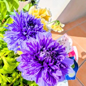 おはようございます😃 八重咲きアネモネ凛々花(リリカ)です。 先週の墓参りの帰りに ホームセンターに寄って連れて帰りました😊 以前から、この色のアネモネが欲しかったのですが なかなか見つからず ようやく出会えました😭💦 しかも激安でした😂