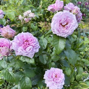 ① 『バラ ルシエルブルー』 咲いてきました💜 新葉がくしゃっとしてしまい… 失敗したなぁ…と思っていましたが 何とか見られる花が❣️ 沢山の蕾が色付いています。 ② 『つるバラ フェアリーテール』 お気に入りの子 ポチポチとずっと咲いています🩷 ④⑤⑥ 掘り上げた球根を 空いた鉢に適当に植えた子達… 植えたはずが盛り上がり… 全部出てますꉂ🤣𐤔③ 押しても押しても盛り上がります。 大きいところに移すべき?? 全部ムスカリかな? 色もだけどなんだかわからなくなってます🤭