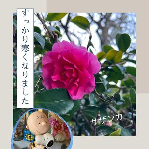 SNOOPYさんの 🏷️毎月2日はスヌーピーの日 🏷️チームスヌー に参加します🍀 サザンカが咲いたら一気に冬って感じですね☃️