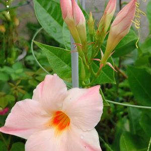 クライミングサンパラソルの ピーチオレンジ 冬越し苗がやっと咲き出したよ😀 ギンセンカ こぼれ種 可愛いです😀 デュランタが 少し咲いてきた なんせ 40℃もあったんだもん 辛かったよね💦 ミズレモンが ツルボケしてる💦