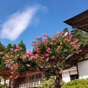 おはようございます😊 今日のお花、サルスベリ 昨日、お盆のお墓参りにて(時宗のお寺) 二枚目はお寺に咲いてたMy新種、ギンセンカ?(ハイビスカス・シンプリーラブ?) 三枚目はこの夏、故郷の山を眺めると、やたらと気になるナラ枯れ、大丈夫だろうか?