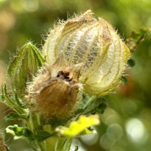 種まきっこ * ギンセンカ * ( 銀銭花 ) 一日だけのお花ですが、紙風船のような形の実も可愛い😍 ふうせんの中にはもうたくさんの種ができています♪ 地中海原産の帰化植物だそうです アオイ科 フヨウ属