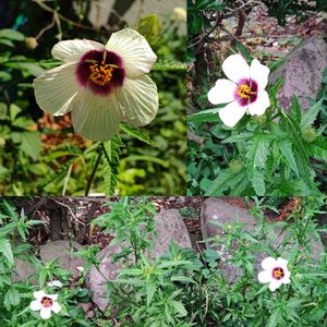 オクラ初収穫は2本 🏷今日のお花 同じアオイ科のお花で ギンセンカも可愛く咲いてます😌 🏷1日花