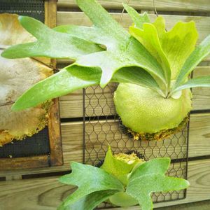 子株成長記録③ 長~い胞子葉はお店の時のもの。 小さく出ている胞子葉は我が家へ来て切り離してから。 この子株はすでに板にも着生していて調子良さそう。 これはあえて水多めで胞子葉が垂れるように育てようと思います😊 同じ株で育て方を変えると成長がどれほど違うかを見てみたい。